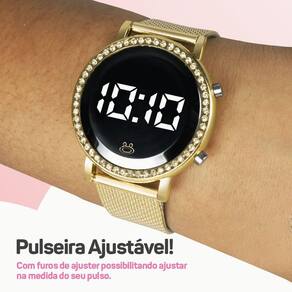 - display: digital, claro e fácil de ler. - maquinário: banhado, garantindo durabilidade e resistência. - detalhes: rodeado por pedrinhas de strass que adicionam um toque de elegância. - pulseira: silicone ajustável, oferecendo conforto e flexibilidade para ajuste perfeito. - tampa blindada: design exclusivo com arte de coração e a inscrição mãe, tornando-o um presente ideal para mães.