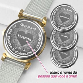 Surpreenda alguém especial com uma personalização única Adicione o nome da pessoa amada tanto na tampa do relógio quanto na caixa.