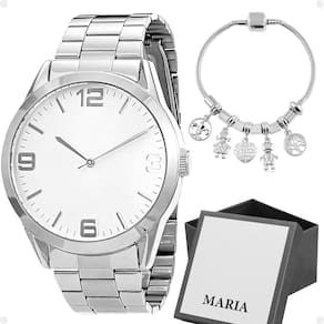 Surpreenda-se com este incrível kit feminino, composto por um elegante relógio analógico feminino, uma deslumbrante pulseira em aço inoxidável prata e uma luxuosa caixa premium Orizom Maria.
