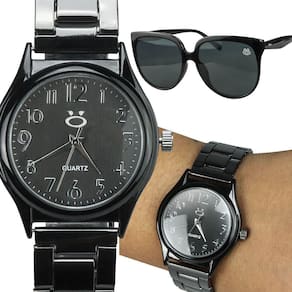 Kit Elegância Feminina - Estilo e Sofisticação em Cada Detalhe- Relógio Feminino Analógico Orizom Maria Todo Preto (Black Piano): Aproveite a qualidade ultra premium do relógio Orizom Maria, todo em aço inoxidável e com uma elegante arte de coração na tampa blindada. Não perca a oportunidade de adquirir esse acessório essencial para qualquer ocasião!- Óculos de Sol Orizom Maria: Proteja seus olhos com estilo com o óculos de sol Orizom Maria, com armação preta (black piano) feita em acetato e proteção UV. Aproveite a qualidade e o design sofisticado desse acessório.Kit Ideal para Presentear ou Uso Diário- Qualidade Ultra Premium: Este kit é uma garantia de durabilidade, estilo e conforto. Uma escolha refinada para presentear alguém especial ou para uso diário.- Estilo e Sofisticação: Cada peça deste conjunto destaca-se por sua elegância e sofisticação, refletindo bom gosto e atenção aos detalhes. Não deixe de adquirir este kit excepcional!Adquira agora este kit excepcional que oferece uma experiência de estilo único e atemporal, ideal para mulheres que apreciam acessórios de alta qualidade.