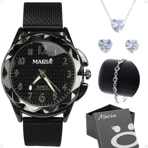 - Relógio Analógico Feminino Orizom Maria: Marca: Orizom Modelo: Maria Gênero: Feminino Qualidade: Ultra premium Prova d'água: Sim Maquinário: Todo feito em aço inoxidável, preto black piano Mostrador: Preto, com números fáceis para compreensão das horas Tampa: Blindada com todos os detalhes de autenticidade, incluindo arte em forma de flores contornando o logo da Orizom Pulseira: Ajustável em silicone, servindo em qualquer pulso