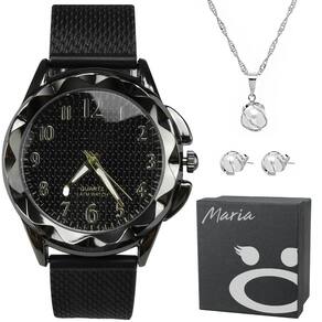 Além disso, o Par de Brincos de Pérola adiciona um toque clássico e refinado ao seu visual, complementando perfeitamente o estilo moderno do relógio. E o Colar em Aço Inoxidável acrescenta um brilho sutil, ideal para ocasiões especiais ou uso diário.