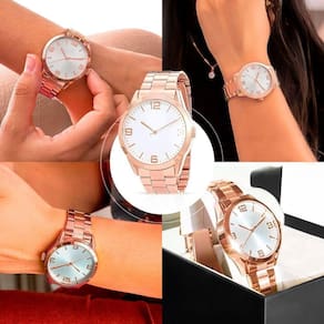 Kit Feminino Orizom Maria - Relógio Analógico e Pulseira Estilo Pandora