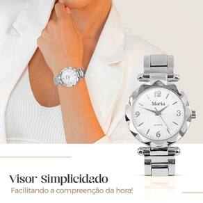 Relogio Feminino Aço Prata + Colar Strass Qualidade Premium Ajustavel Delicado Relógio feminino orizom maria kit com acessórios - luxo e sofisticação Este kit premium da orizom é o presente perfeito para momentos especiais ou para você se presentear com estilo e elegância. Composto por um relógio e acessórios de alta qualidade, todos em aço inoxidável, ele combina durabilidade, beleza e um design moderno. Conteúdo do kit: - relógio feminino orizom maria: relógio analógico com maquinário e pulseira em aço inoxidável de cor prata, proporcionando um visual sofisticado e resistente ao desgaste. O mostrador também na cor prata oferece uma estética clean e elegante. A tampa traseira é blindada e conta com uma arte exclusiva da orizom, reforçando sua autenticidade e atenção aos detalhes. Importante: detalhes internos e externos podem variar de acordo com montagem do relogio no ato da compra - colar em aço inoxidável prata: colar em aço inoxidável de aproximadamente 45 cm de comprimento, resistente e versátil, ideal para diversas ocasiões e perfeito para complementar o estilo do conjunto. - pingente de strass transparente: um delicado pingente em formato de pedrinha de strass transparente, que adiciona um toque de brilho e sofisticação ao colar. - par de brincos: par de brincos com design idêntico ao pingente do colar, ambos com strass transparente, formando um conjunto harmonioso e moderno. - caixa ultra premium: a embalagem é uma caixa ultra premium da orizom, com o logo em baixo relevo na cor prata e pedrinhas de strass transparente, ideal para presentear e encantar. Especificações do relógio: - marca: orizom - modelo: maria - tipo: analógico - cor: prata com mostrador prata - material: aço inoxidável - autenticidade: tampa traseira com arte exclusiva orizom Esse kit é a escolha ideal para quem valoriza o luxo, a durabilidade e o design moderno. Adquira já o seu e experimente toda a sofisticação da orizom Marca: Não Informado