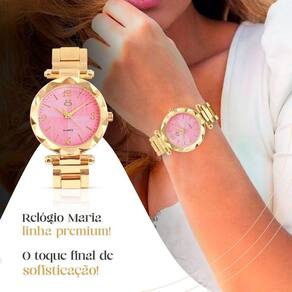 Relogio Feminino Aço Rosa + Caixa + Colar Strass Presente Delicado Inoxidável chegou o Kit Orizom Maria - Relógio Feminino e Acessórios de Luxo Surpreenda-se com o novo kit premium da Orizom, perfeito para ocasiões especiais ou para se presentear com elegância e sofisticação. O conjunto é composto por um deslumbrante relógio feminino, pulseira de aço inoxidável banhada em dourado, elegante colar e um par de brincos, tudo com design moderno e de alta qualidade. O Relógio Feminino Orizom Maria possui mostrador rosa e maquinário analógico, garantindo durabilidade e resistência. Com tampa traseira blindada e arte exclusiva da Orizom, ele é sinônimo de autenticidade e atenção aos detalhes. Além disso, o kit inclui um Colar em Aço Inoxidável com aproximadamente 45 cm de comprimento, um pingente de strass rosa e um par de brincos, formando um conjunto perfeito para diversas ocasiões. E para completar, a embalagem é uma Caixa Ultra Premium da Orizom, com o logo em baixo relevo na cor rosa com glitter e uma pedrinha de strass rosa, pronta para presentear e encantar. Obtenha já o seu kit premium da Orizom e adicione luxo, durabilidade e design moderno ao seu estilo Marca: Não Informado