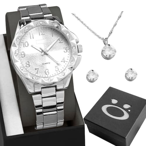 Complemente seu visual com este Conjunto de Acessórios em aço inoxidável na cor prata. O colar em formato elegante possui aproximadamente 45 cm de comprimento, proporcionando um ajuste confortável e sofisticado. O pingente com strass transparente adiciona um toque de glamour e brilho ao conjunto, garantindo sofisticação em cada detalhe. Surpreenda-se com versatilidade e elegância em um só kit