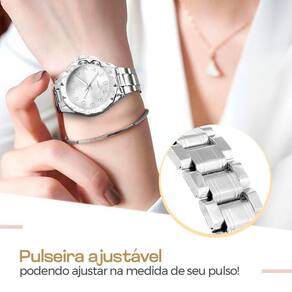 Acompanhe o ritmo da sua rotina com este Relógio Feminino Analógico, confeccionado em aço inoxidável para garantir resistência e durabilidade. Com seu design clean e sofisticado em tons de prata, ele é perfeito para diversas ocasiões. Além disso, a tampa traseira blindada oferece proteção contra respingos e umidade, proporcionando tranquilidade em seu dia a dia. Adquira já o seu e esteja sempre elegante e pontual