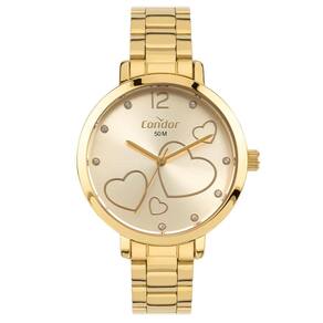 O modelo traz uma combinação incrível entre o banho dourado com mostrador champanhe, resistência de 50m, caixa redonda com 41mm, pulseira de aço dourada e maquinismo analógico.