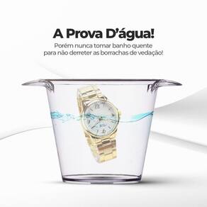 "Surpreenda-se com este elegante e deslumbrante kit de acessórios! Com um relógio analógico feminino dourado banhado a 18k, à prova d'água e feito em aço inoxidável, você terá estilo e durabilidade no seu dia a dia. O colar com pingente em strass transparente irá adicionar um toque de elegância e brilho sutil ao seu visual, enquanto o par de brincos e a pulseira, ambos banhados com strass transparentes, oferecem sofisticação e glamour para qualquer ocasião. E para agregar ainda mais valor, incluímos uma caixa Orizom Maria Premium! Perfeito para presentear a si mesmo ou aquela pessoa especial, este kit é uma combinação memorável de elegância e brilho. Não perca esta oportunidade de adquirir este presente incrível!"