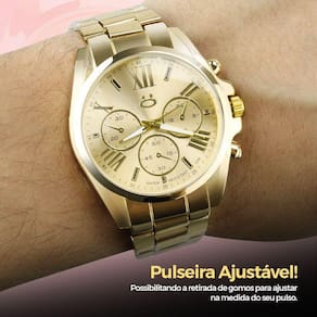 Detalhes do produto: - modelo: relógio feminino analógico orizom maria - edição: limitada - material: todo em aço inoxidável, garantindo durabilidade e resistência. - acabamento: banhado a ouro, oferecendo um brilho luxuoso e uma aparência de alta qualidade. - mecanismo: movimento de ponteiro tradicional, preciso e confiável. - caixa: inclui uma caixa premium orizom maria, projetada não apenas para acomodar o relógio de maneira segura, mas também para apresentá-lo de forma elegante, ideal para um presente.