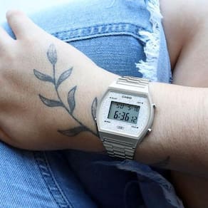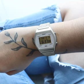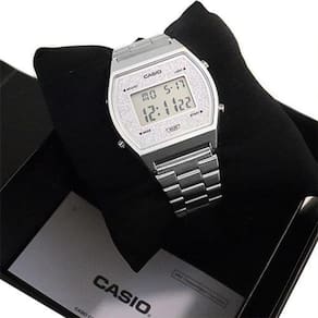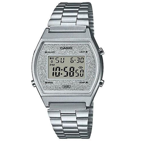 Todo o charme e sofisticação estão presentes no Relógio Feminino Casio Glitter Vintage B640Wdg-7Df Prata. Perfeito para quem procura um item com estilo vintage mas sem perder seu toque moderno e elegante. O Casio B640Wdg-7Df conta com mostrador digital que oferece muito mais facilidade ao seu dia a dia. Especificações TécnicasMarca: CasioReferencia: B640Wdg-7DfGênero: FemininoCor: PrateadoComposição do Vidro: Cristal MineralMaterial da Caixa: ResinaMaterial da Pulseira: Aço InoxidávelModelo : DigitalMecanismo: QuartzAlimentação: BateriaResistência à Água: 5 ATMDiâmetro da Caixa: 38,9 × 35 × 9,9 mmPeso: 49gFunções especiais:- Luz de fundo LED- Afterglow- Alerta de flash- Pisca com uma campainha que soa para alarmes, sinal horário- Cronômetro de 1/100 segundoCapacidade de medição:00'00 "00 ~ 59'59" 99 (durante os primeiros 60 minutos)1: 00'00 ~ 23: 59'59 (após 60 minutos)Unidade de medição:1/100 segundo (nos primeiros 60 minutos)1 segundo (após 60 minutos)Modos de medição: tempo decorrido, tempo parcial, horário do 1º ao 2º lugar- TemporizadorUnidade de medição: 1 segundoFaixa de contagem regressiva: 24 horasFaixa de configuração da hora de início da contagem regressiva: 1 segundo a 24 horas (incrementos de 1 segundo, incrementos de 1 minuto e incrementos de 1 hora)Outros: Repetição automática- Alarme multifuncional- Sinal horário- Calendário automático completo (até o ano 2039)- Formato de 12/24 horas- Horário regular: Hora, minuto, segundo, pm, mês, data, dia- Precisão: ± 30 segundos por mêsConteúdo Da Embalagem: 01 Relógio Feminino Casio Glitter Vintage B640Wdg-7Df PrataCaixaNota FiscalCertificado De GarantiaSobre a Casio: A Casio Computer Co., Ltd. é um dos fabricantes líder no mercado mundial de produtos eletrônicos ao consumidor e de soluções de equipamentos empresariais. Desde sua fundação, em 1957, a CASIO vem trabalhando para manter o princípio de "criatividade e contribuição" da corporação, lançando produtos inovadores.