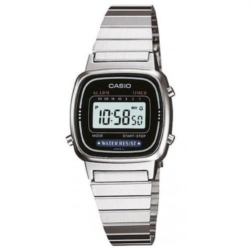 Informações Básicas Marca: CASIO Modelo: Vintage Referência: LA670WA-1DF Genêro: Feminino Garantia: 1 Ano em Toda Rede de Assistência Técnica Casio no Brasil Características Composição do Vidro: Acrílico Material da Caixa: Aço Inox Cor da Caixa: Prateado Material da Pulseira: Aço Inox Cor da Pulseira: Prateado Medidas -Largura da Caixa: 2,4 cm -Altura da Caixa: 2,4 cm Resistência à Água WR: 30 Mts Pode Lavar as Mãos: SIM Pode Usar em Água Corrente: NÃO Pode Usar na Piscina: NÃO Pode Usar em Mergulho Profundo: NÃO Funções Especiais Calendário Cronógrafo -Alarme Timer Marca: Não Informado Ean: 4971850436560