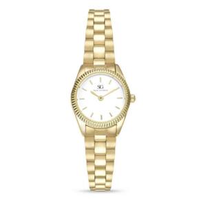O Relógio Feminino Celeste Dourado Mini de 24mm é a perfeita união entre a modernidade do aço prateado e o luxo dos detalhes dourados. Com seu design versátil, ele se adapta a qualquer ocasião, garantindo sofisticação e elegância em todos os momentos. O bisel canelado adiciona um toque clássico, enquanto o tamanho compacto é ideal para mulheres que preferem um acessório discreto, mas marcante.