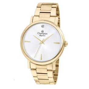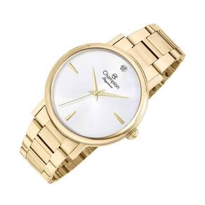 Esse relógio feminino Champion é analógico e possui uma caixa dourada, feita em metal de alta qualidade. Sua pulseira também é dourada, feita em aço, e o bisel é na mesma cor. Além disso, o relógio é resistente à água até 5 ATM, garantindo durabilidade e segurança.