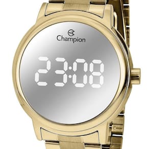 Características: Marca: Champion Modelo: CH40115B Cor da caixa: Dourado Material da caixa: Metal Cor da pulseira: Dourado Material da pulseira: Aço Mostrador: Digital espelhado Resistência à água: 5 ATM Dimensões da Embalagem: Altura: 9cm Largura: 12cm Profundidade: 12cm Peso: 0,350Kg Garantia: 12 Meses Ean: 7891511417172