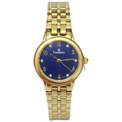 Com formato redondo e vidro em cristal mineral, esse relógio possui caixa em metal dourado, que combina perfeitamente com o mostrador na cor azul. A pulseira é feita em aço inox dourado, conferindo durabilidade e resistência ao acessório.