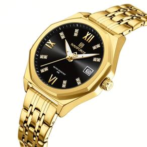 Este relógio foi cuidadosamente desenhado para mulheres que valorizam a elegância e a precisão em seus acessórios. Com um mostrador adornado por strass e numerais romanos, ele exala um charme clássico que complementa tanto ocasiões formais quanto eventos casuais. Sua pulseira feita de aço inoxidável sólido proporciona conforto e durabilidade, enquanto o seu design sofisticado o torna o presente ideal para datas comemorativas.