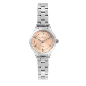 O mostrador salmão com números confere um toque de elegância ao relógio, tornando-o fácil de ler e combinando perfeitamente com a pulseira prateada. Além disso, ele vem com garantia de 1 ano, oferecendo tranquilidade e segurança para a sua compra.
