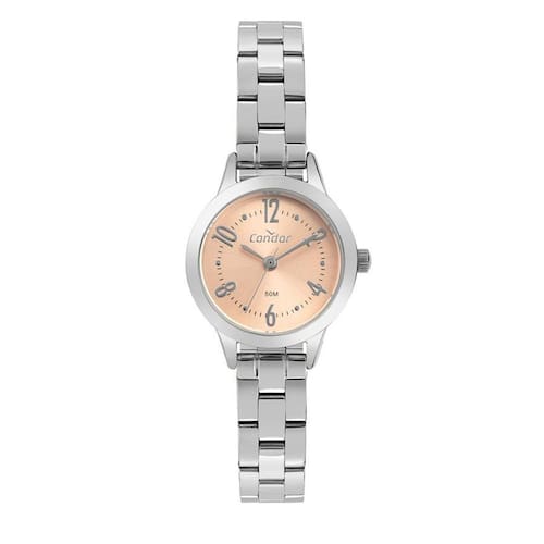 O Relógio Condor Feminino Ref: Co2035Mzo/4J Social Prateado é um acessório elegante e sofisticado que irá complementar perfeitamente qualquer look. Com uma caixa de metal e uma pulseira de aço, esse relógio possui um design moderno e feminino. O vidro de cristal mineral garante durabilidade e resistência aos riscos, enquanto o fundo proporciona uma vedação confiável. Além disso, ele é resistente à água até 5 ATM, o que significa que você pode usá-lo durante atividades diárias, como lavar as mãos ou enfrentar uma chuva leve. Com um diâmetro de 25.00 MM, esse relógio é perfeito para mulheres que preferem peças mais delicadas. A alimentação do maquinário é feita por uma bateria, e a máquina é japonesa, garantindo qualidade e precisão. O mostrador salmão com números confere um toque de elegância ao relógio, tornando-o fácil de ler e combinando perfeitamente com a pulseira prateada. Além disso, ele vem com de 1 ano, oferecendo tranquilidade e segurança para a sua compra. Este relógio Condor feminino é uma escolha perfeita para mulheres que buscam estilo e funcionalidade em um único acessório. Seja para uso diário ou para ocasiões especiais, ele irá adicionar um toque de sofisticação ao seu visual. 1. Esse relógio possui ? Sim, esse relógio possui de 1 ano. 2. Ele é resistente à água? Sim, esse relógio é resistente à água até 5 ATM, o que significa que você pode usá-lo durante atividades diárias, como lavar as mãos ou enfrentar uma chuva leve. 3. Qual é o tamanho da caixa? A caixa desse relógio possui um diâmetro de 25.00 MM, sendo perfeito para mulheres que preferem peças mais delicadas. 4. Qual é a cor do mostrador? O mostrador desse relógio é na cor salmão, conferindo um toque de elegância ao acessório. Adquira agora mesmo o Relógio Condor Feminino Ref: Co2035Mzo/4J Social Prateado e tenha um acessório de qualidade e estilo para acompanhar você em todas as ocasiões. Marca: Não Informado
