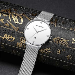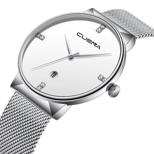 Relógio Feminino Cuena Strass Malha De Aço Prateado Excelente relógio, ideal para quem busca um modelo versátil. Combinará com qualquer ocasião. Perfeito para o dia a dia agregando qualidade e conforto. Lindo para presentear quem você gosta
