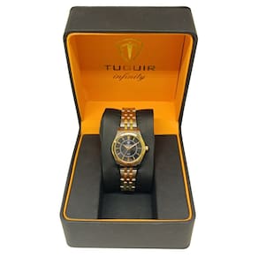 Relógio Feminino de Aço Tuguir Analógico 2462H Prata e PretoMarca: Tuguir Categoria: Analógico Analógico: Sim (1 Horário) Ponteiros Fluorescentes: Sim Digital: Não Luz: NãoResistente à Água: 5 ATM (Pode ser utilizado para nadar no raso, por pouco tempo submerso) - Respingos: Sim - Chuva: Sim - Lavar Carro: Sim - Lavar Louça: Sim - Natação: Sim - Mergulho: Não Característica do Vidro: Cristal Mineral Tipo de Fecho: Dobrável com Botão Cor da Caixa: Prata Material da Caixa: Aço Formato da Caixa: Redondo Diâmetro da Caixa: 28,00 (mm) Espessura da Caixa: 8,00 (mm) Cor da Pulseira: Prata Material da Pulseira: Aço Largura da Pulseira: 12,00 (mm) Comprimento Máximo da Pulseira: 220,00 (mm) Alimentação: Bateria Interna Peso Líquido: 0,050 Kg Modelo: 2462H Cor Predominante: Prata Cor Diferencial: Preto Garantia: 12 MesesConteúdo da Embalagem: 01 Relógio 01 Embalagem 01 Termo de Garantia