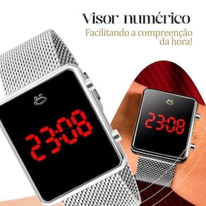 Conteúdo do Kit: - Relógio Feminino Digital Orizom Maria: Design moderno com caixa quadrada prateada, feito inteiramente em aço inoxidável, pulseira de silicone ajustável. - Colar de Aço Inoxidável: Aproximadamente 45 cm de comprimento, versátil e resistente. - Pingente Redondo com Pedra de Strass Transparente: Sofisticado e elegante, adornado com uma pedra de strass transparente. - Par de Brincos de Aço Inoxidável com Pedras de Strass Transparentes: Duráveis e brilhantes, incrustados com pedras de strass transparentes. - Caixa Premium Orizom Maria: Acondicionados de maneira segura e elegante.