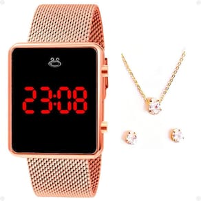 Relogio feminino digital aço inox + brincos + colar Kit de presente orizom maria: relógio feminino digital e colar com pingente de strass em caixa exclusiva