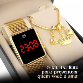Surpreenda a mulher especial em sua vida com este elegante e completo kit presente da coleção Orizom Maria. O kit inclui um relógio feminino digital com formato quadrado e maquinário em aço inoxidável banhado, além de uma pulseira ajustável em silicone para servir em qualquer pulso. Para complementar o conjunto, acompanha uma pulseira banhada, proporcionando um toque de elegância e sofisticação ao visual.