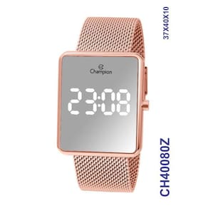 O Relógio Feminino Digital Champion Rosé Espelhado é ideal para te acompanhar no dia a dia. O relógio de pulso possui a caixa em metal e pulseira em aço inoxidável na cor rosé. Um produto feminino, delicado, versátil e muito prático para te acompanhar todos os dias, em qualquer ocasião. O Relógio é um dos acessórios mais presentes em todas as fases da nossa vida, mesmo com inúmeros dispositivos modernos que mostram as horas, o clássico relógio analógico para pulso não perdeu seu charme e é uma ótima opção para complementar o visual.