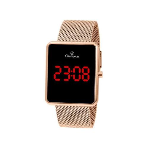 Especificações Técnicas: Produto: Relógio digital de pulso Marca: Champion Cor: Rosé Gênero: Feminino Resistência à água: 3 ATM Formato da Caixa do Relógio: Quadrado Material do Relógio: Aço Vidro: Cristal Mineral Função do Relógio: Digital Garantia: 1 ano Medidas da caixa AxLxE : 3,7 x 4,3 x 1 cm