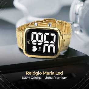 Relogio Feminino Digital Dourado + Caixa + Pulseira Pandora Moda Qualidade Premium Social Casual Kit de Presente Orizom Maria - Relógio Feminino Digital e Pulseira Relógio Feminino Orizom Maria - Tipo: Digital - Formato: Quadrado - Cor: Banhado Dourado - Material: Aço inoxidável - Tampa: Blindada com arte exclusiva Maria e detalhes de autenticidade