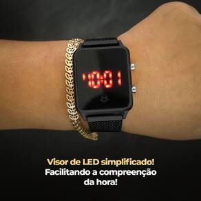 Relogio feminino digital qualidade premium preto + caixa led casual moda presente led ajustavel Relógio Digital Feminino Preto Orizom Maria
