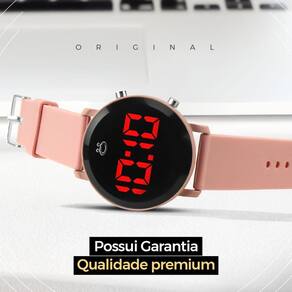 Relogio feminino digital redondo aço inoxidavel + caixa presente casual rosa moda ajustavel silicone Kit relógio feminino digital orizom maria com caixa premium - presente ideal para ela