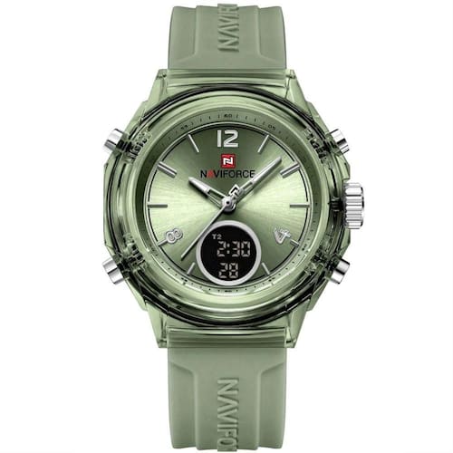 O design do mostrador redondo, em acrílico, complementa seu estilo esportivo elegante. A pulseira de silicone é confortável, durável e adapta-se perfeitamente ao pulso feminino, com um comnto de 23 cm e largura de 18 mm. O fecho de fivela garante segurança ao usá-lo. Este relógio é mais do que apenas um acessório é uma declaração de estilo com praticidade incorporada.