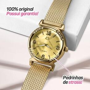 Relogio Feminino Dourado Aço + Colar Mãe Coração + Caixa Social Moda Casual Presente Silicone Strass Não perca a chance de presentear a Maria (Mãe) da sua vida com este incrível kit especial! Este conjunto exclusivo inclui um elegante colar feminino em aço inoxidável na cor dourada, perfeito para dar um toque de sofisticação ao visual da sua mãe. Além disso, o pingente em aço inox, banhado e adornado com strass transparente em forma de coração, simboliza todo o amor que você sente por ela. E para completar, uma caixa premium Orizom Maria, com uma frase especial, tornando o presente ainda mais memorável! Com características únicas como malha veneziana, tamanho da corrente de 42cm e espessura de 1mm, este colar é uma verdadeira obra prima. Além disso, a caixa personalizada traz um toque de exclusividade a este presente.