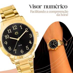- Relógio Feminino Analógico Orizom Maria: Elegância e sofisticação em um design deslumbrante dourado, banhado em ouro, confeccionado em aço inoxidável de alta qualidade. Adicione glamour e estilo ao seu look com este acessório premium.