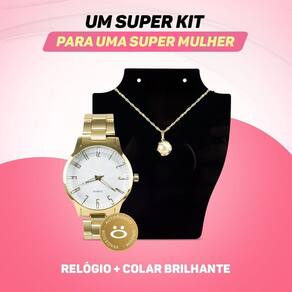 Relogio feminino dourado aço prova dagua + colar ponto luz casual social presente descrição do produto: