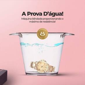 O kit inclui: - 1 Relógio Analógico Prova d'água, cor dourada, em aço inoxidável envio com logomarcas aleatórias, detalhes internos podem variar - 1 Colar em Aço Inoxidável Banhado com Pingente de Strass para um toque sutil de brilho - 1 Par de Brincos em Aço Inoxidável Banhado com Pedrinhas de Strass para um brilho delicado