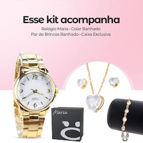Relogio Feminino Dourado + Colar Aço Strass + Caixa Pulseira Qualidade Premim Social Casual Presente Arrase no estilo com este kit incrível! Relógio analógico feminino banhado a 18k, à prova d'água e feito em aço inoxidável para durabilidade e elegância no dia a dia. Combine com o colar banhado em strass transparente para um toque de brilho sutil e sofisticado, e complemente com o par de brincos banhados com pedrinhas de strass para qualquer ocasião. E para finalizar, a pulseira banhada com vários strass transparentes adiciona um glamour irresistível ao conjunto. E ainda vem com uma caixa Orizom Maria Premium para garantir que seu presente seja ainda mais especial. Não perca essa oportunidade de presentear com estilo e sofisticação!