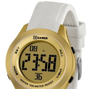 Relógio Feminino Dourado E Branco Digital X-Games O Relógio é um dos acessórios mais presentes em todas as fases da nossa vida, mesmo com inúmeros dispositivos modernos que mostram as horas, o clássico relógio para pulso não perdeu seu charme e é uma ótima opção para complementar o visual. O Relógio Feminino Dourado E Branco Digital X-Games é perfeito para uso pessoal ou para presentear alguém especial em uma data comemorativa, sendo um presente único, de ótimo gosto, elegância e muita praticidade. Produzido com materiais resistentes e de qualidade, a peça reúne sofisticação e estilo em um único item. A escolha perfeita para mulheres elegantes que gostam de ter um acessório incrível para complementar o look em qualquer ocasião. Informações Básicas Marca: X-Games Referência: XMPPD598 CXBX Gênero: Feminino : 1 Ano em Toda Rede de Assistência Técnica Características: Composição do Vidro: Acrílico Material da Caixa: Resina Cor da Caixa: Dourado Material da Pulseira: Silicone Cor da Pulseira: Branco Mostrador: Digital Dourado Cor do Bisel: Dourado Funções: Alarme Cronômetro Timer Dual Time Dia da Semana Dia do Mês Luz Noturna 12/24 Horas Medidas: Diâmetro Da Caixa: 4,2 cm Espessura da Caixa: 0,9 cm Largura da Pulseira: 2,0 cm Resistência a Água: 100 Mts/ 10 ATM Pode Lavar as Mãos: Sim Pode Usar em Água Corrente: Sim Pode Usar na Piscina: Sim Pode Usar em Mergulho Profundo: Não Acompanha: Manual de Instrução Certificado de Caixa da X-Games Ean: 7891529175453