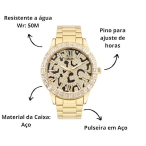 Relogio feminino dourado fundo onça euro eu2036ytg/4p