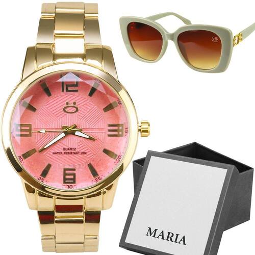 **Conjunto Elegante Orizom Maria - Relógio Dourado, Óculos de Sol Premium e Caixa Exclusiva**
