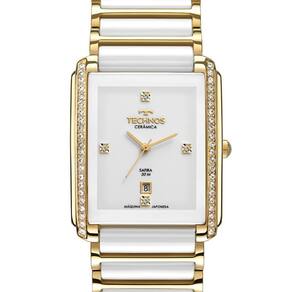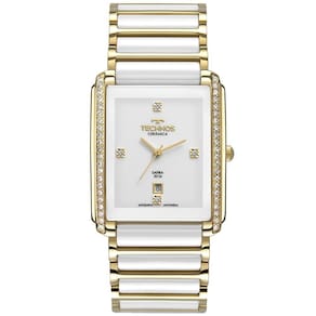 características composição do vidro: cristal safira material da caixa: aço inox cor da caixa: dourado e branco material da pulseira: aço inox e cerâmica cor da pulseira: branco e dourado mostrador: fundo branco com data