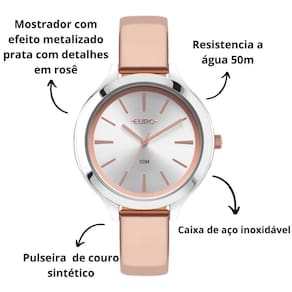 Relogio feminino euro pulseira prata/rose eupc21jac/5j