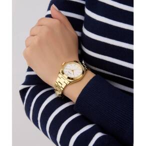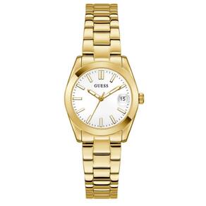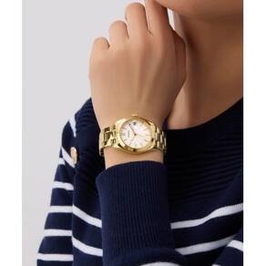 Relógio Feminino Guess Alice GW0934L2 Dourado O Relógio Feminino Guess Alice GW0934L2 é a escolha ideal para quem busca um acessório sofisticado que nunca sai de moda. Com sua pulseira de aço inoxidável dourado e mostrador branco perolado, transmite luxo e delicadeza em cada detalhe. Perfeito para todas as ocasiões, o modelo une a qualidade reconhecida da Guess com um design atemporal que valoriza o estilo feminino. Especificações Técnicas Mecanismo: Analógico Quartzo Gênero: Feminino Visor: Branco Vidro: Cristal mineral Resistente à água: 30m Características: Mostrador com indicação do dia Diâmetro da caixa: 28mm Tipo de fecho: Fivela Simples : 1 ano pela fabricante Guess Marca: Não Informado Ean: 7909669216285