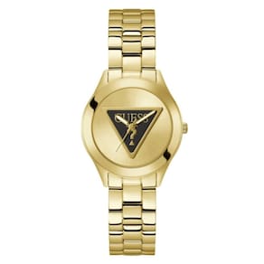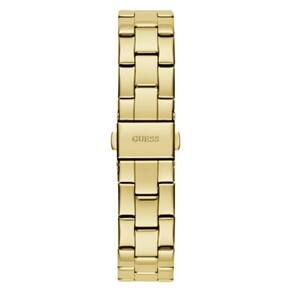 O relógio feminino Guess Tri Plaque GW0675L2 é um modelo oferecido às mulheres que apreciam acessórios elegantes e de moda. O contraste entre o preto profundo e o ouro brilhante cria um efeito visual cativante. O logotipo da marca, colocado no mostrador, significa compromisso com acabamento de qualidade e design moderno. Os componentes do relógio são feitos de aço inoxidável reciclado.