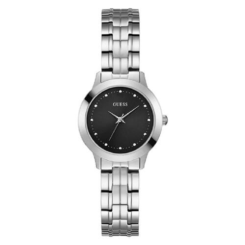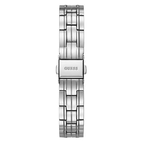 Relógio feminino de quartzo GUESS com pulseira de aço inoxidável, prata, 14 (modelo: U0989L9) - Pulseira de aço inoxidável prateado com fecho de fivela piloto - Caixa redonda polida em tom prateado - Caixa de 30 mm com cristal mineral durável que protege o relógio contra arranhões - Resistente à água até 30 m (100 pés): em geral, resiste a respingos ou breve imersão na água, mas não é adequado para nadar ou tomar banho