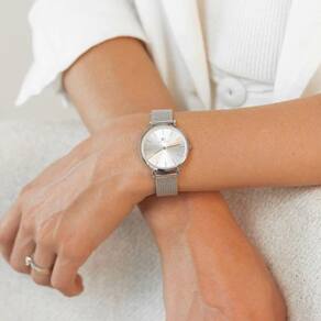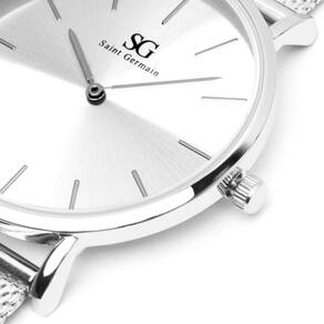 O Relógio Feminino Pulseira Prata Harlem Full Silver 32mm Saint Germain com pulseira de PI aço inoxidável prata possui 32mm de diâmetro. A caixa é metal prata e o mostrador prata shine, vidro com mineral endurecido com alta resistência.