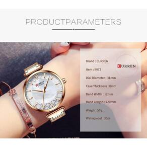 Caracteristicas:O movimento de quartzo fornece cronometragem precisa.Feito de pulseira de aço inoxidável e espelho de vidro duro, muito durável.Relógio de pulso elegante e elegante, fácil de combinar bem com seu vestido; Pode ser decoração para suas roupas.O relógio à prova dágua 3ATM/30m pode resistir a respingos de água ou garoa sem pressão.Relógio de aparência incrível, um bom presente para seu amante, famílias e amigos, etc.Especificações:Marca: CURRENModelo: 9072Material da banda: Aço inoxidávelÀ prova dágua: 3 ATMComprimento da faixa: 220mmLargura da banda: 12mmDiâmetro do mostrador: 31mmEspessura da caixa: 8mmObservação:Devido à tela de exibição diferente e efeito de luz, a cor real do item pode ser ligeiramente diferente da cor exibida nas fotos.Lista de embalagem:1 relógio de quartzoConhecimento impermeável:Relógio à prova dwaterproof água é dividido em 3 categorias: vida diária impermeável, vida diária reforçada à prova dwaterproof água e mergulho à prova dwaterproof águaGeralmente, a resistência da água de 30 metros é somente para a lavagem das mãos e a resistência do respingo. A natação precisa ser impermeável a 100 metros.Relógios impermeáveis de qualquer grau não podem suportar banhos de água quente ou chuveiros, porque relógios impermeáveis não podem impedir o vapor de água.Perguntas e respostas