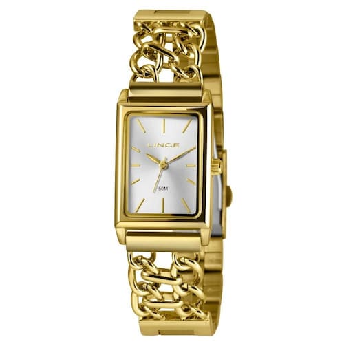 O Relógio Feminino Lince Analógico LQG4798L23 S1KX é sinônimo de estilo e sofisticação. Sua caixa retangular dourada traz elegância atemporal, enquanto o mostrador prateado minimalista com marcadores dourados oferece um visual refinado e de fácil leitura.